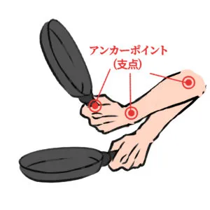 すると肘をアンカーポイント”支点”にすることによって、腕を上下に振ることができます。