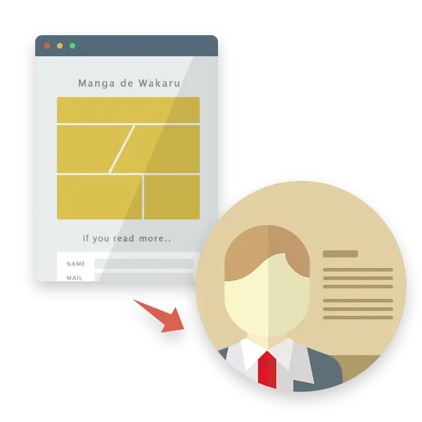 この方法を取るなら、マンガの冒頭1~2ページをウェブ上で公開し、「続きが気になる方はこちらから」という形で資料ダウンロードフォームを設置する形式がおすすめです。週刊誌で連載しているマンガの続きが気になるように、資料の続きが気になるからお問い合わせをする、という動機づけをすることが可能になります。