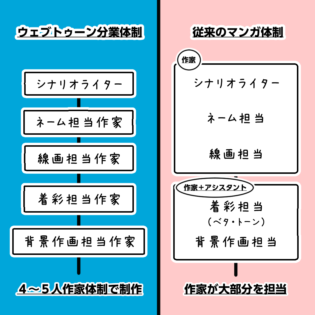 従来のマンガとウェブトゥーンの作り方の大きな違いに