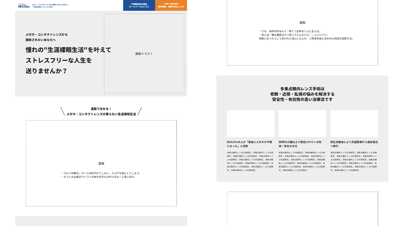 マンガLPは、漫画ならではの「続きを読みたい」という特性を活かしたコンテンツです。ファーストビューから、各セクションの間などにマンガを入れ込むことで、ユーザーの興味を引きつつ、内容を分かりやすく伝えることができます。